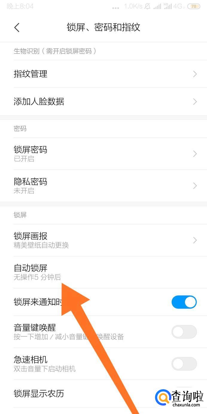 再点击“自动锁屏”设置选项。