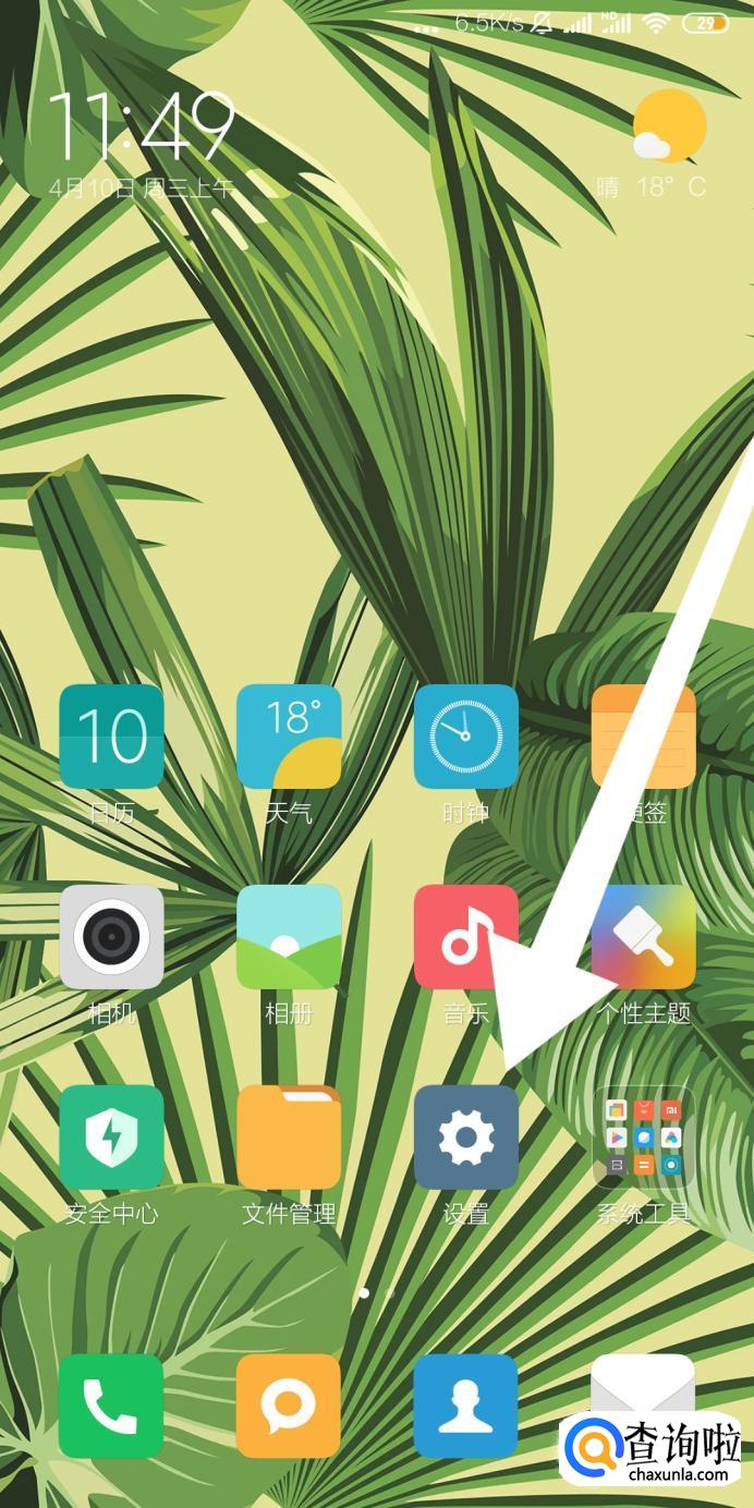 首先点击进入小米手机的“设置”应用程序。