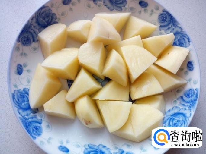 土豆去皮,用水清洗干净,切成块。再用水投几遍,控干水分,备用。