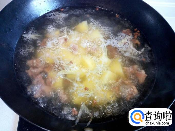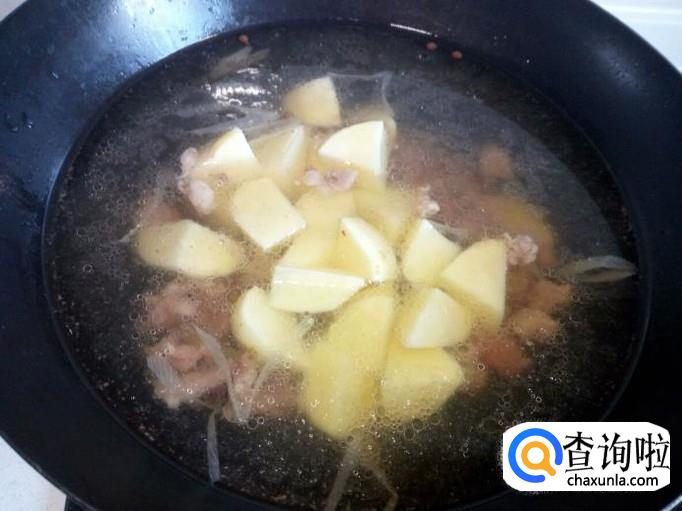 牛肉炖烂糊后(大概一小时的时间),放入土豆,放入盐,大火烧开,转小火慢炖。