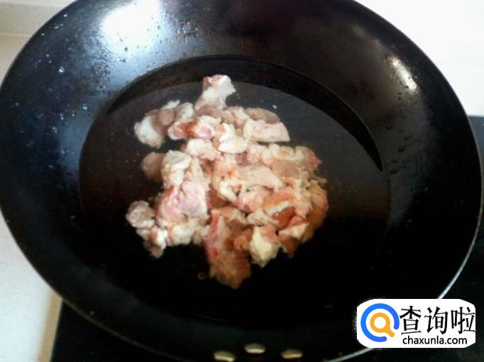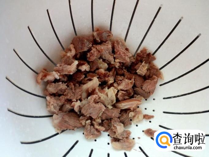 把切好的牛肉放入冷水锅中烧开,开锅煮一分钟的时间捞出,用水冲洗干净(血水和沫子),沥干水分。