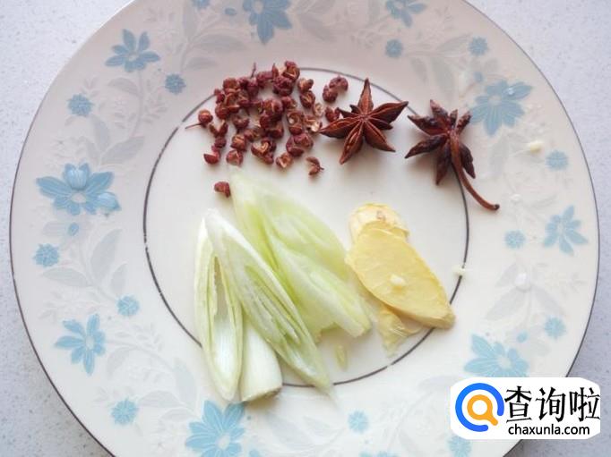 切好葱,姜,准备好八角,花椒,备用。