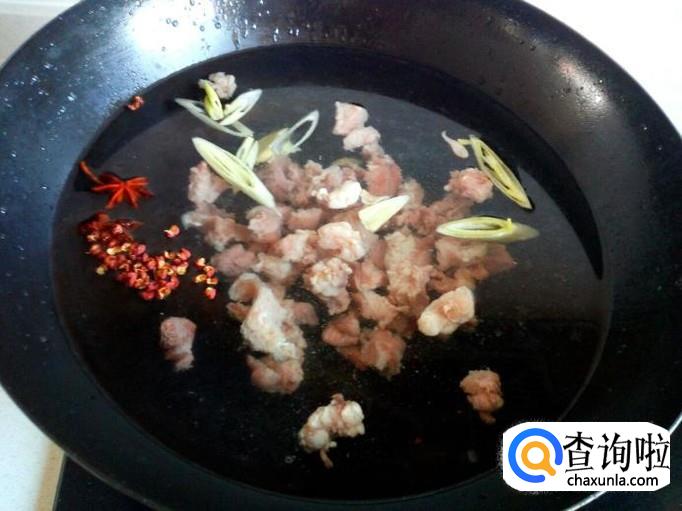 锅内重新放入水,放入牛肉,放入八角,花椒,葱,姜,料酒,大火烧开,转小火慢炖。