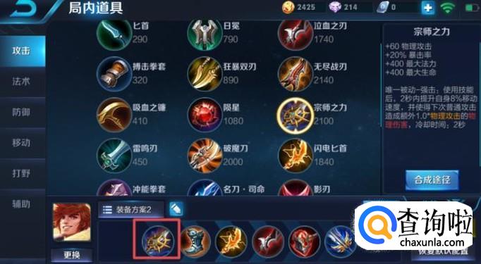 裴擒虎这名英雄还是非常强势的,我们第一件装备可以出宗师之力,这个装备的优势就在于多方面的增加属性,其中最为重要的就是增加20%的暴击率,这个是非常有优势的,可以让裴擒虎在前期就可以抓人。