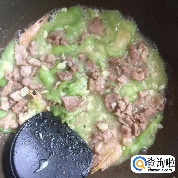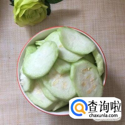 接着把丝瓜切成薄片,倒入锅中翻炒三分钟。