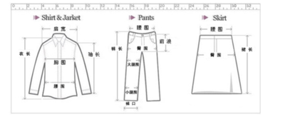 在国家标准GB/T1335中,女装上衣S号(小号)的号型是155/80A;M号(中号)为160/84A;L号(大号)为165/88A。“号”是指服装的长短,“型”是指服装的肥瘦。如165/88A,斜线前后的数字表示人体高度和人的胸围或腰围,斜线后面的字母表示人的体形特征。Y型指胸大腰细的体型,A型表示一般体型,B型表示微胖体型,C型表示胖体型,区别体型的方法是看胸围减去腰围的数值而定。