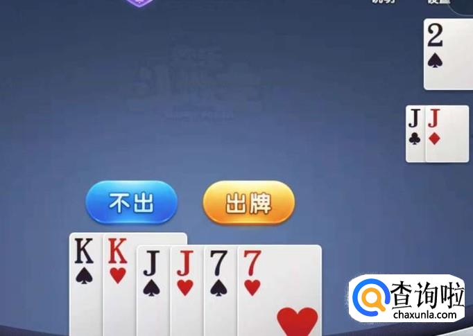 对方出一对J,我们就出一对K,这时牌面上看,我们还有一对7和一对J,对方只剩一个2,我们接着出对子就能赢了。
