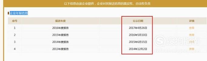 然后我们进入公司信息页面后我们往下拉找到“企业年报信息”栏目,我们会看到公示的相关信息,通过上面的最新日期可以判断使用已经通过年检。