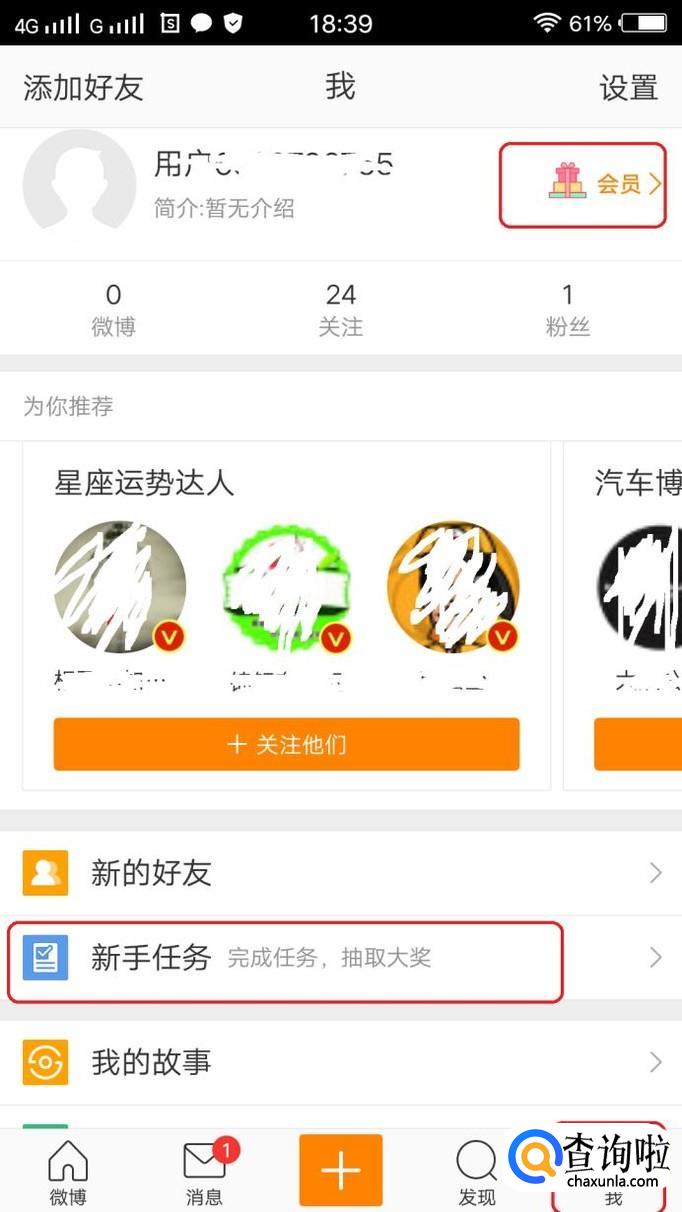 微博想要快速升级,有两个方法,第一个方法是做任务,第二个方法是开通会员,快速升到5级还是很容易的。首先,点击微博首页右下方的“我”,点击“新手任务”,我们看到完成“成长任务”和“基础任务”都能得到大量的经验值。