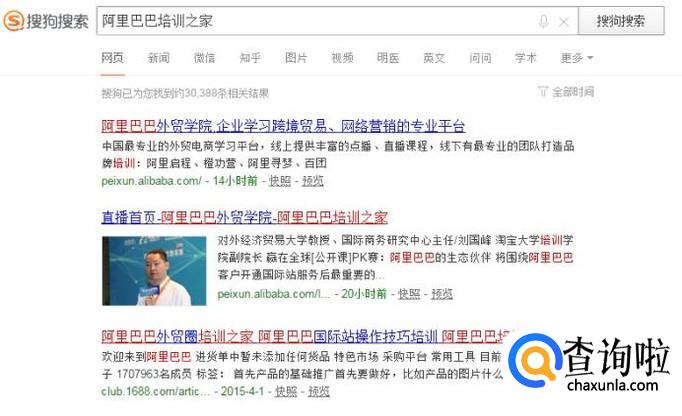 首先使用搜狗浏览器搜索阿里巴巴培训之家,然后找到官方网站,然后单击进入