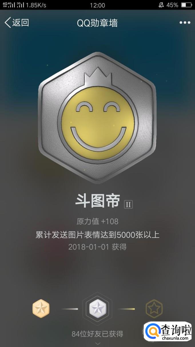 “斗图帝”这个名字一听就这的是与发图片有关的。与好友发送的图片达到1000张就可以获得铜勋章,5000张则获得银勋章,累计发送的图片有20000,就是两万张,才可以获得金勋章,听起来好像有点困难,赶紧找你好友斗图把!