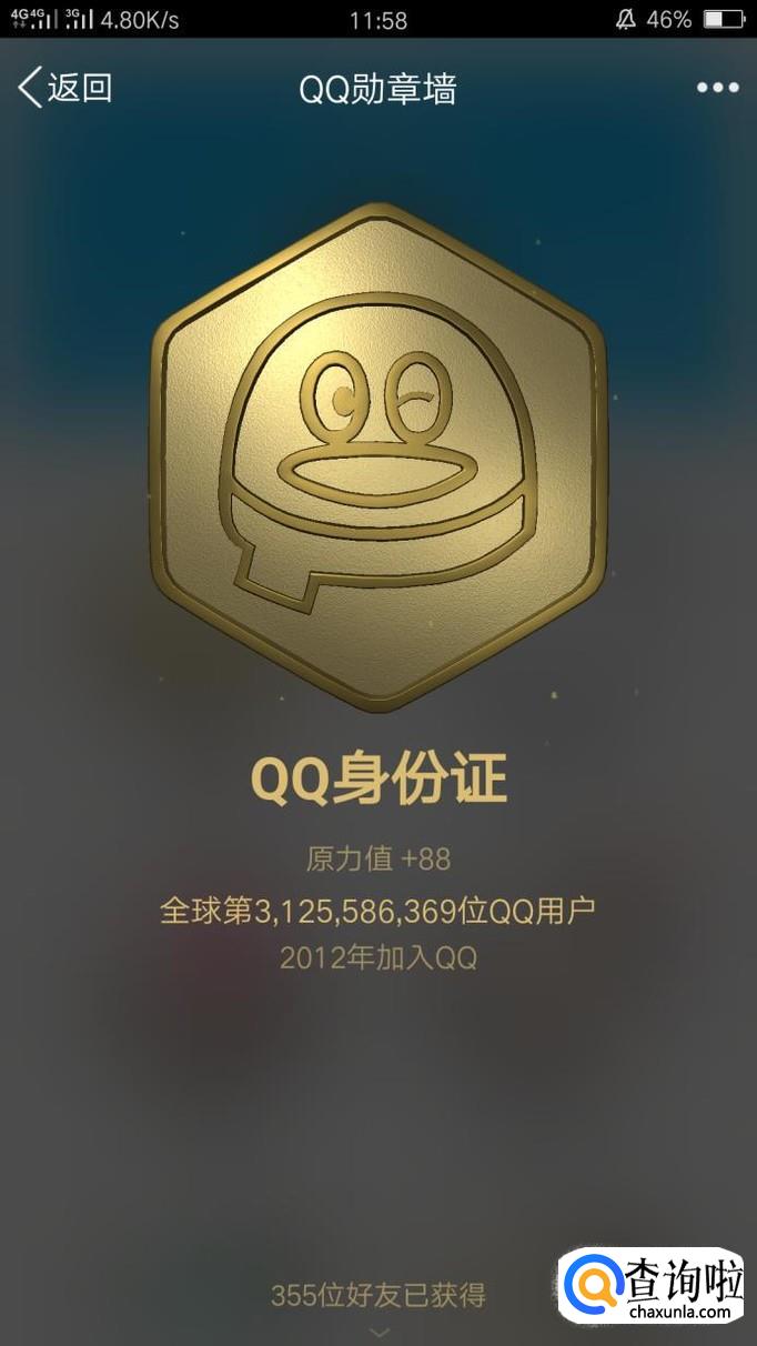 第一个勋章为“QQ身份证”,只要你申请了QQ就可以获得这个勋章哦!