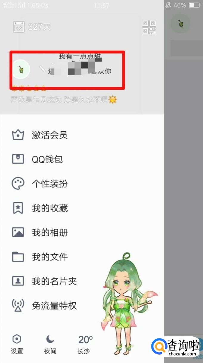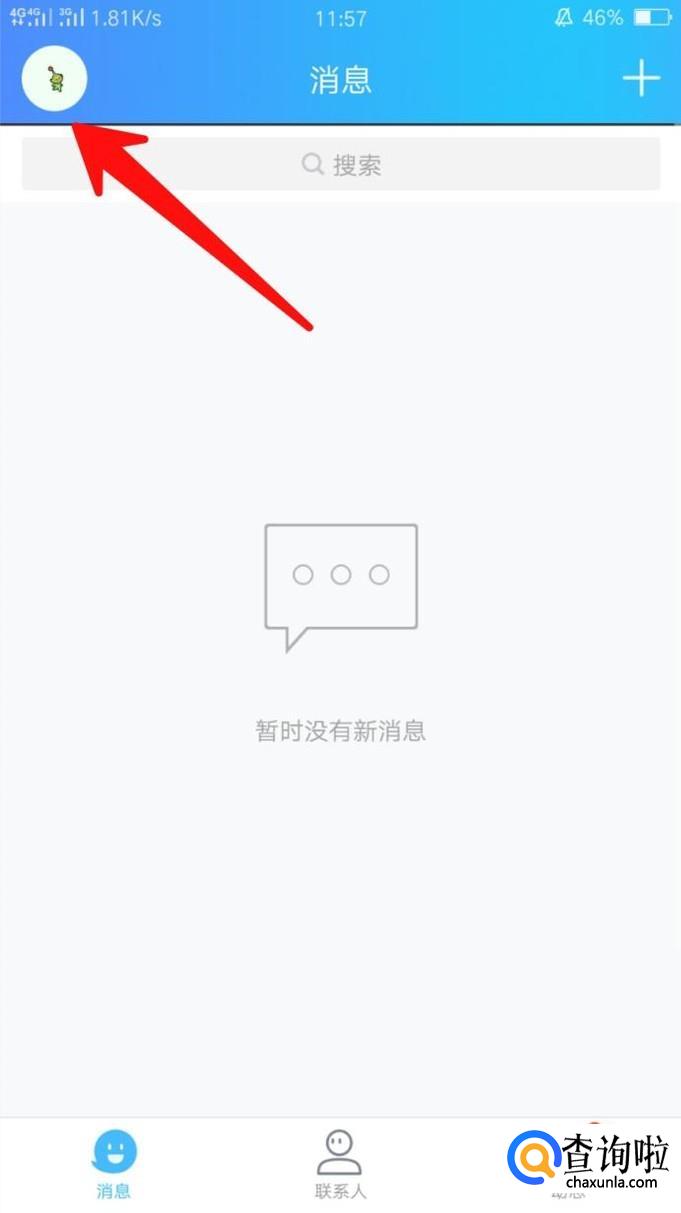 首先进入手机QQ,登陆QQ账号,接着在消息界面点击左上角的头像,然后点击小编框起来的位置,进入个人资料的界面,如下图所示。
