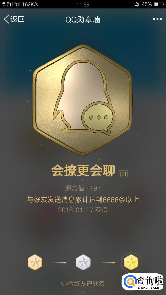 “会撩更会聊”是需要给自己的好友们发信息,发送的信息累积达到666条以上可获得铜勋章,累积达到3666条信息就可以获得银勋章,而金勋章的信息条数就比较多了,要6666条哦!各位QQ用户们加油了。