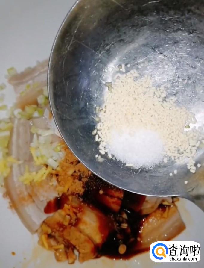 葱姜,花椒,大料,料酒,五花肉,盐,老抽,蚝油,生抽,十三香,鸡精,蒸肉粉,油菜