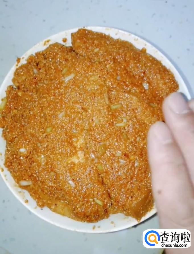然后我们再放入适量的盐,十三香,鸡精调味,再放入适量的蒸肉粉,抓拌均匀,腌制20分钟