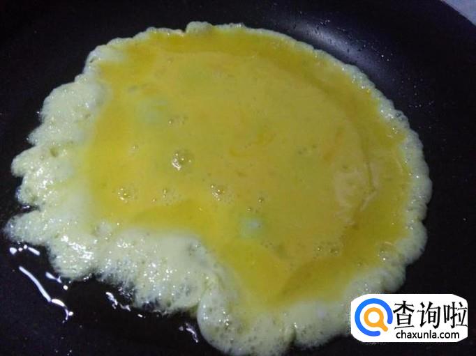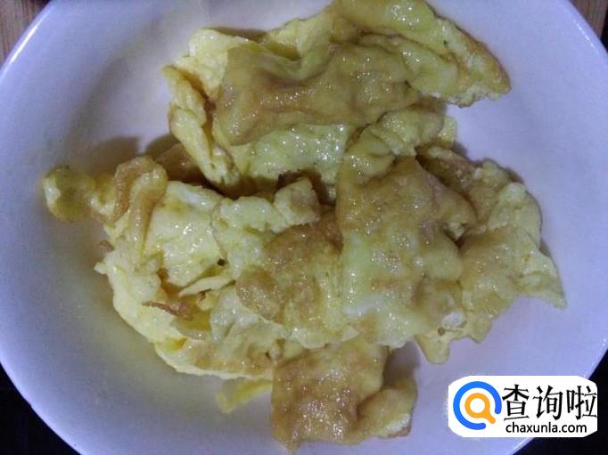 锅烧热,加入适量油,油温六成热时将蛋液倒入锅中,炒散后盛出