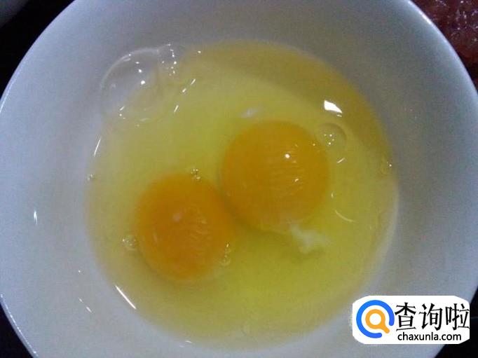 3:取两个新鲜的鸡蛋,打成蛋液
