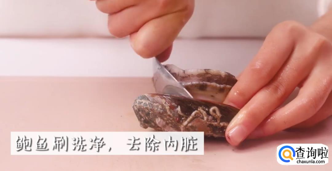 下一步,把准备好的鲍鱼洗刷干净,再将鲍鱼的内脏去除掉,再将鲍鱼肉和鲍鱼壳分离开。