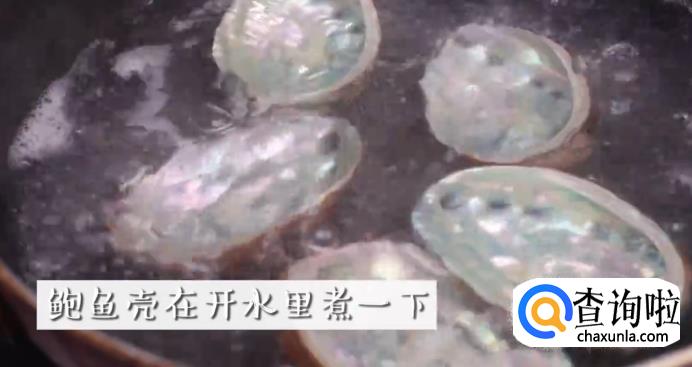 烧开一锅水,把鲍鱼壳放入开水中煮一下,做这一步是为了给鲍鱼壳消毒,因为等下鲍鱼壳会作为容器。