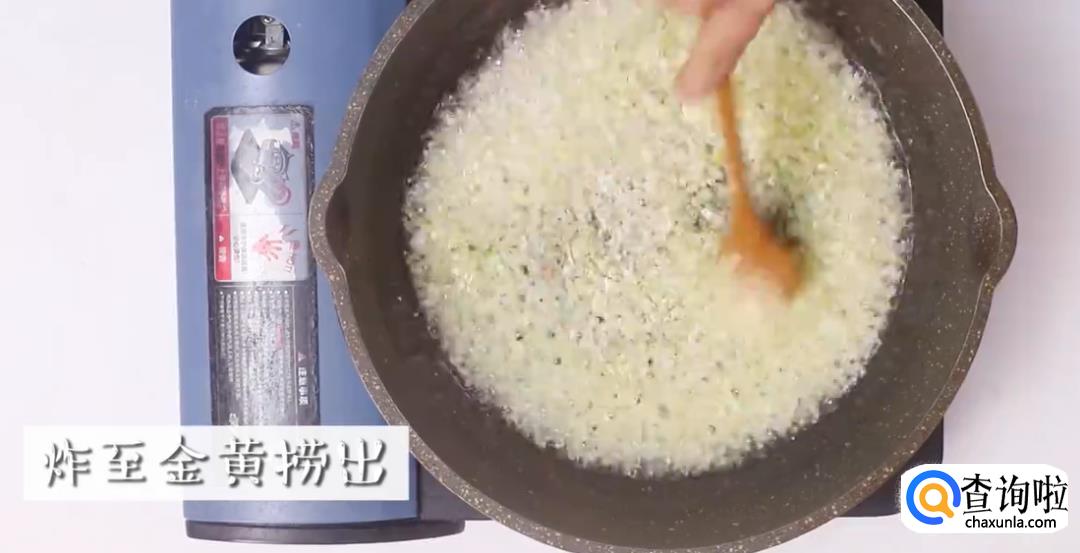 锅里热好油,将混合好调料的蒜泥倒入,炸至蒜泥变为金黄色即可捞出。