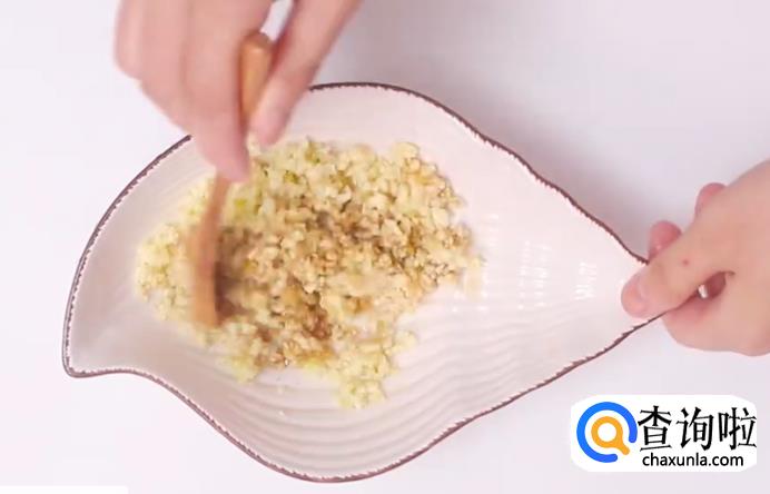 然后,再把蒜剥皮洗净,切成蒜泥。
