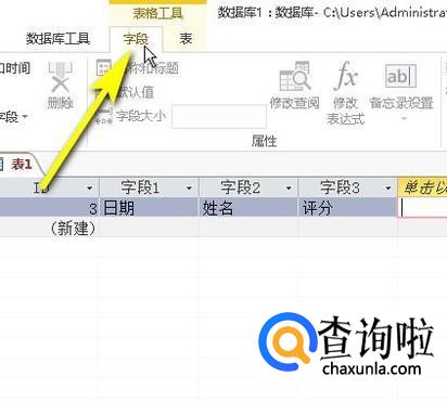 鼠标移到菜单栏这里,点击“字段”菜单。