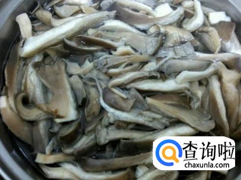 锅中加入适量水,水开后下入洗好的蘑菇,煮1分钟捞出,新鲜蘑菇炒的时候水分太大,所以需要用开水烫一下.