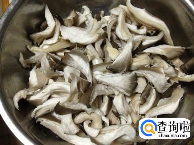 首先我们准备食材,蘑菇300克,手撕一下,清洗干净备用,猪肉300克切片,葱姜适量切丝.