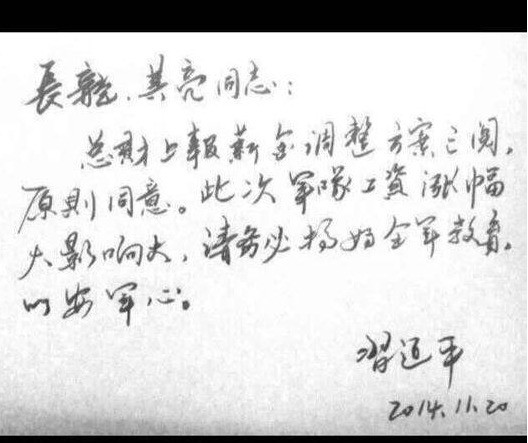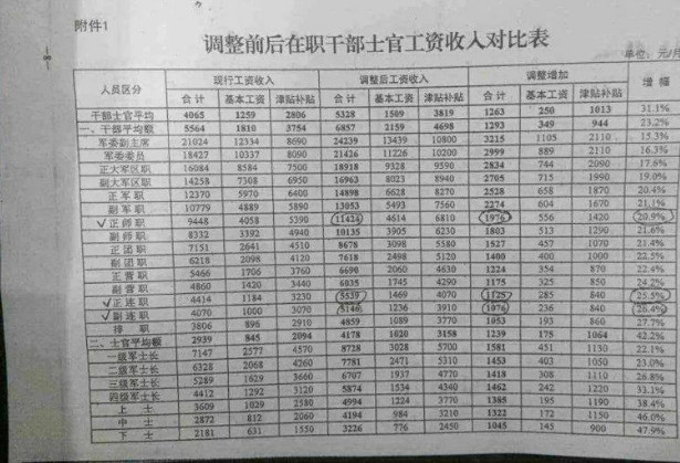 习 主席同意中国人民解放军2015年涨工资并补发2014年12个月!标准如下图