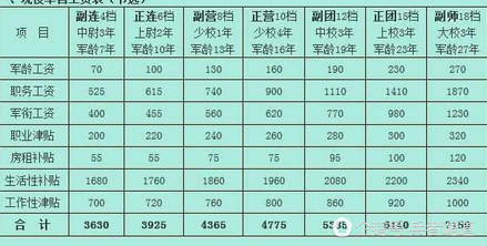 2、校官:营职到师职约5200元至7800元左右人民币,较现时4200元至7800元左右增加1000多元左右,调整后的工资将有5200元至8800元左右人民币。