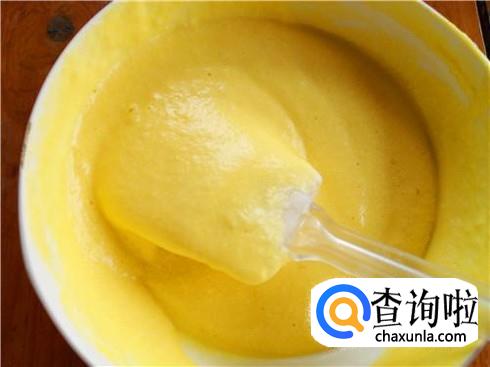 加进去一勺子白糖和两勺子酸奶,再加上一点面粉,用筷子搅拌均匀,一定不能太粘稠。
