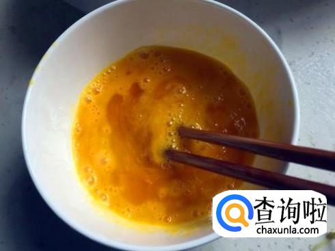 碗里打进去两个鸡蛋,这个根据个人食量决定,一个人吃的话两个鸡蛋足够了,用筷子将鸡蛋打散。