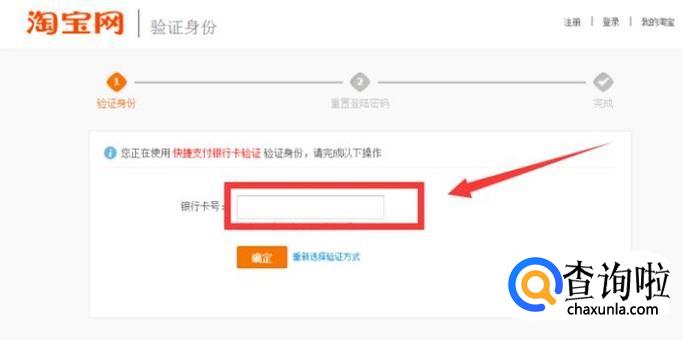 输入需要找回密码的淘宝账号所关联的支付宝绑定的银行卡并确认