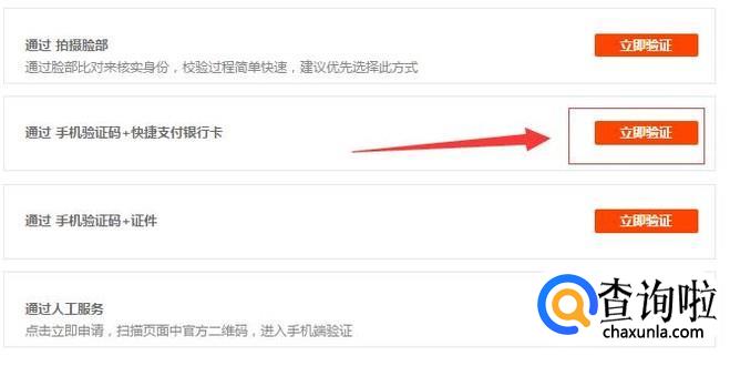 我们以“通过 手机验证码+快捷支付银行卡”的方式找回密码为例。选择并点击立即验证。