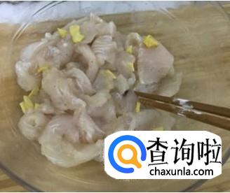 新鲜的龙利鱼切成片或坨,装盘中,加料酒,淀粉,盐,老抽,搅匀,腌制15分钟左右