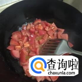 锅中加油,油8分热时加入我们切成块的番茄,中火炒制番茄