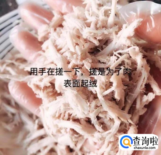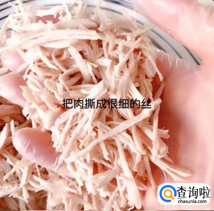 然后把猪肉撕成很细的丝,如下图所示。