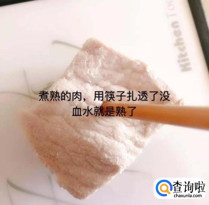 接着把煮好的肉捞出放凉,如下图所示。小贴士:煮熟的肉用筷子扎透没有血水流出来,那么说明我们这个这块肉就煮好了;如果有血水流出来,那么继续放锅里煮三分钟左右就差不多了。