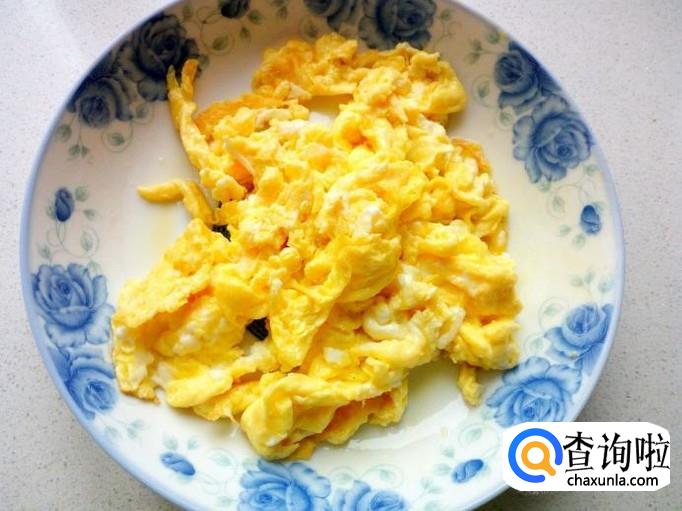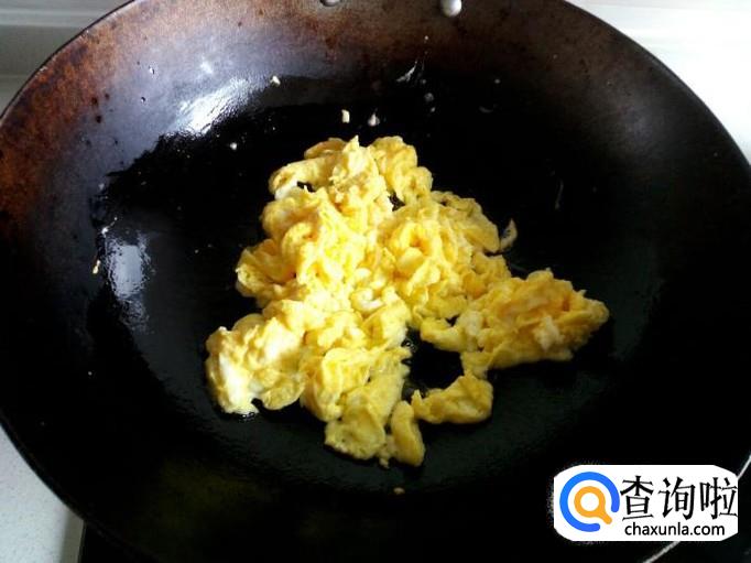 用锅把鸡蛋炒出来,炒至七分熟即可,盛出备用。