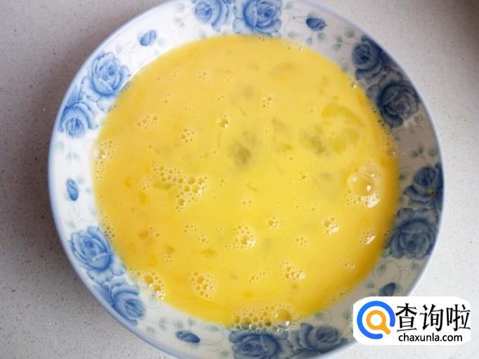 鸡蛋打入盘中,搅拌成鸡蛋液。