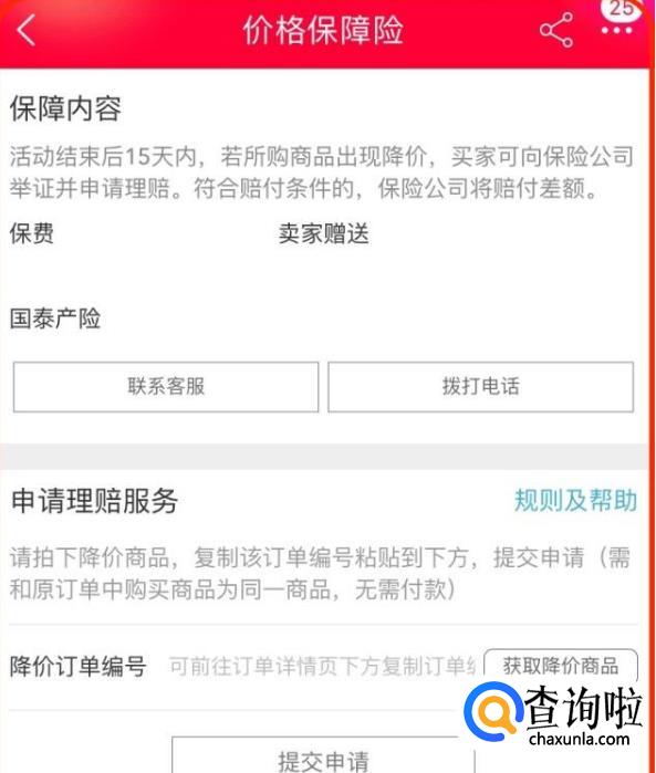 在理赔申请页面,提交举证订单(拍下即可,无需付款),复制该降价的订单号填入举证框内提交(此订单为新拍的降价订单,非原订单号)。