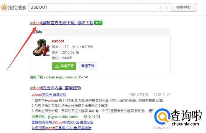 在搜索候选项中选择到【USBOOT】官网下方的【高速下载】安装打开。