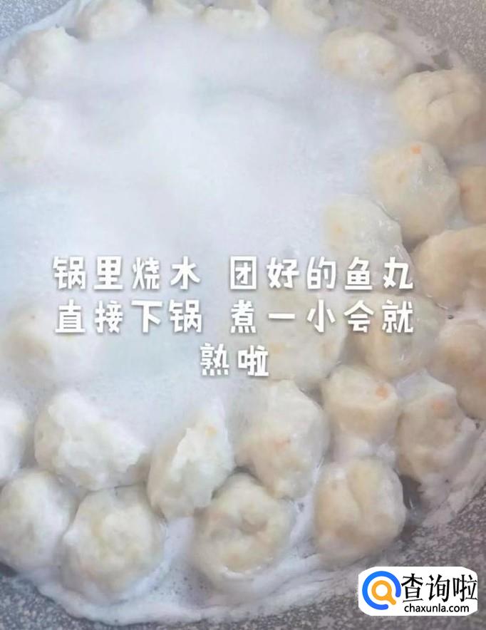 然后锅中放入适量的清水,待水烧开,倒入做好的鱼丸煮三分钟就可以捞出来了。