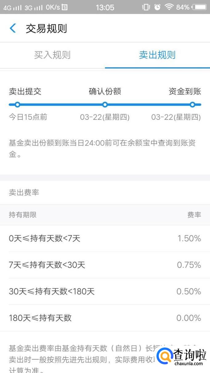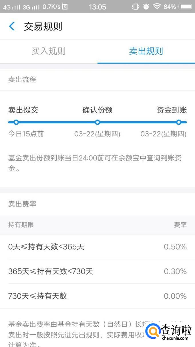 点击卖出规则,就能知道自己会被扣多少手续费。不同的基金有不同的卖出规则,以下是两个基金的卖出规则对比。