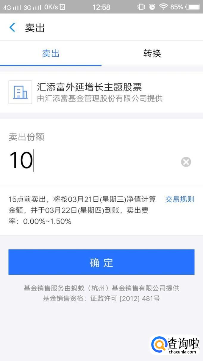 进入卖出页面,输入想卖的基金份数。