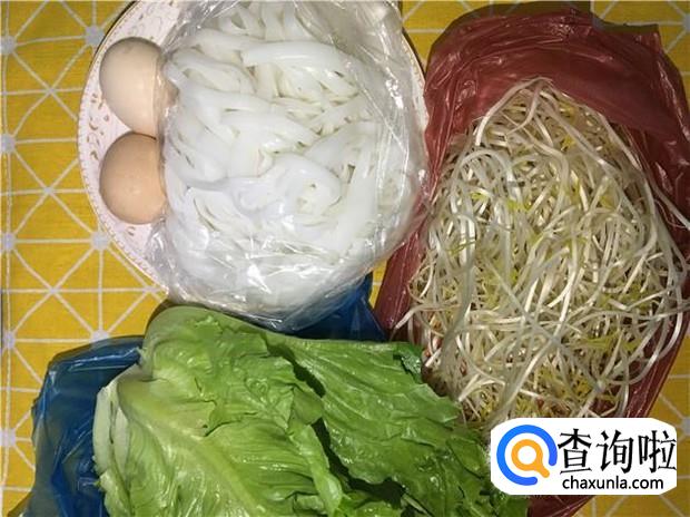河粉、鸡蛋、豆芽、青菜、姜、花生油、酱油、盐
