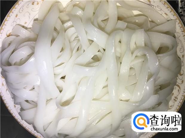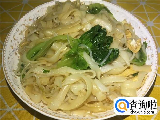 把炒河粉的材料买齐:河粉适量、青菜两颗、鸡蛋两颗、豆芽半斤。