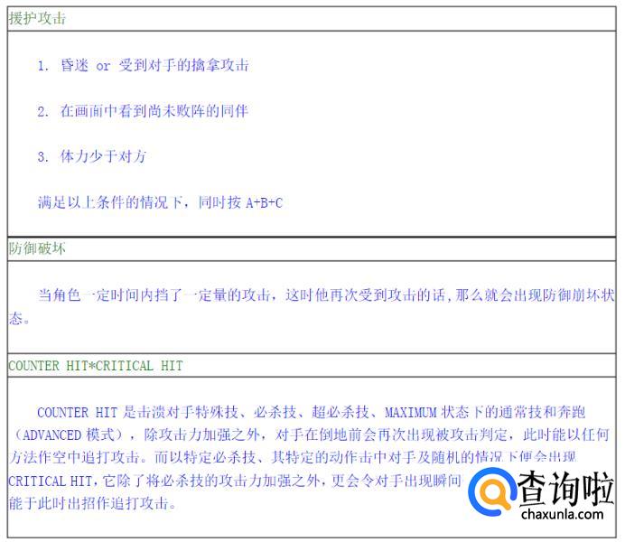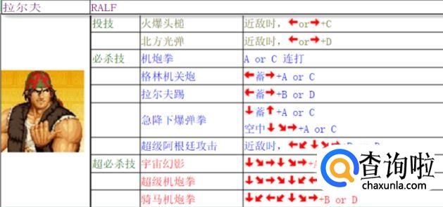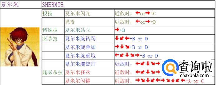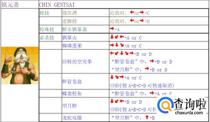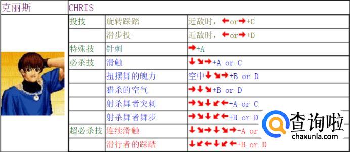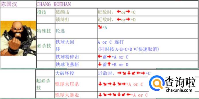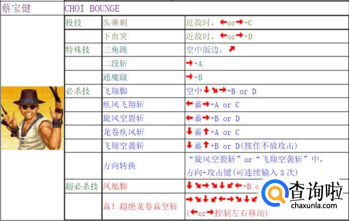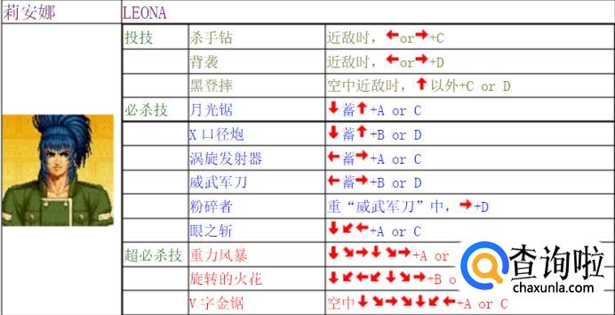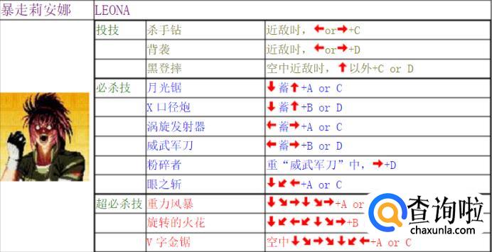隐藏人物出招表:'94草薙京、暴走八神庵、暴走莉安娜。