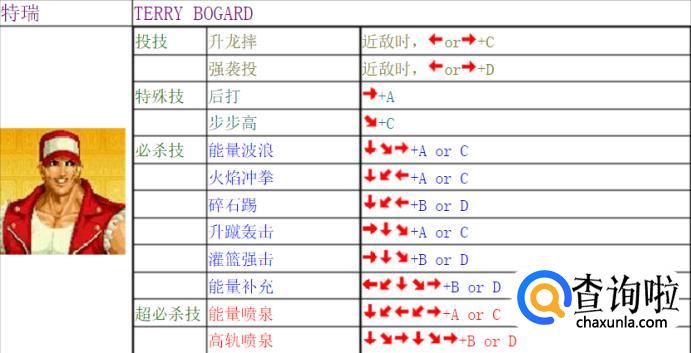 饿狼传说队出招表:特瑞、安迪、东丈。